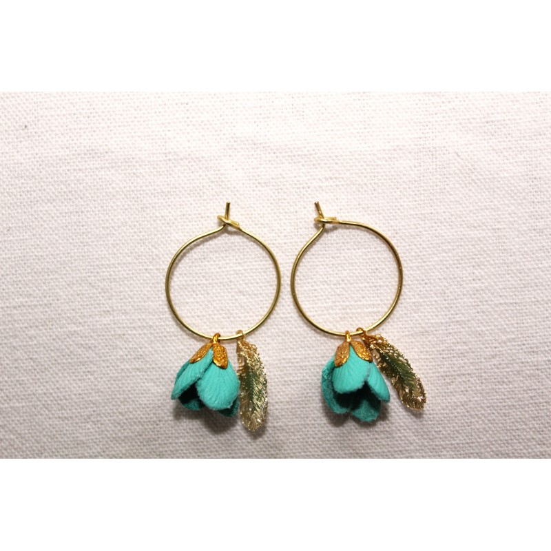 Bijoux pour oreilles percées, montage doré et bourgeons fabriqués en tissu